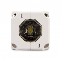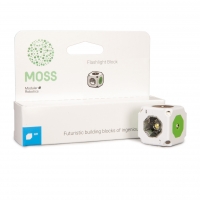 The MOSS Flashlight is an action Block that glows bright when activated. It uses a small LED to light the way for your robotics creations. Use the Flashlight to illuminate your path or trigger a Brightness Sensor.